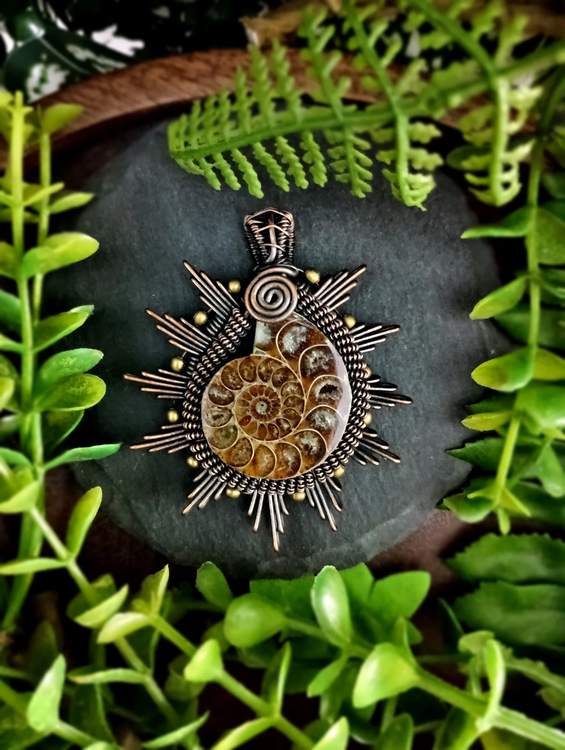 Shop › Phoebe Ammonite Copper Pendant Image 1 of 1 Phoebe Ammonite Copper Pendant $25.00 Size: 2.5inCenterpiece: AmmoniteCenterpiece Size: 28x33mmFinish: Antique Patina CopperQty: 1RRP: $69.99Though this item is hand-crafted with care, slight variations may occur.We proudly guarantee the quality of every piece. Ships in 2-3 business days. Please allow longer for large orders. Add To Cart Added! Size: 2.5inCenterpiece: AmmoniteCenterpiece Size: 28x33mmFinish: Antique Patina CopperQty: 1RRP: $69.99Though this item is hand-crafted with care, slight variations may occur.We proudly guarantee the quality of every piece. Ships in 2-3 business days. Please allow longer for large orders. Antique Copper LumaChain Necklace $5.00 Add To Cart